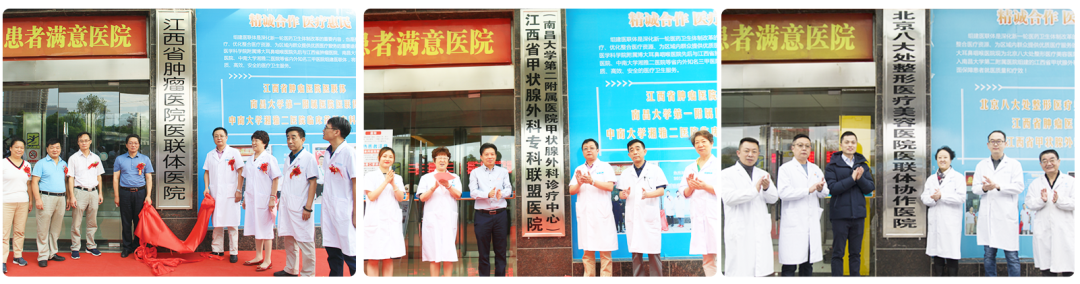 ▲醫(yī)院先后與江西省腫瘤醫(yī)院、北京八大處整形醫(yī)療美容醫(yī)院等組建醫(yī)聯(lián)體,并加入江西省甲狀腺外科??坡?lián)盟,在醫(yī)療資源共享和人才流動上展開深度合作,進一步提升醫(yī)院的管理和技術(shù)水平。